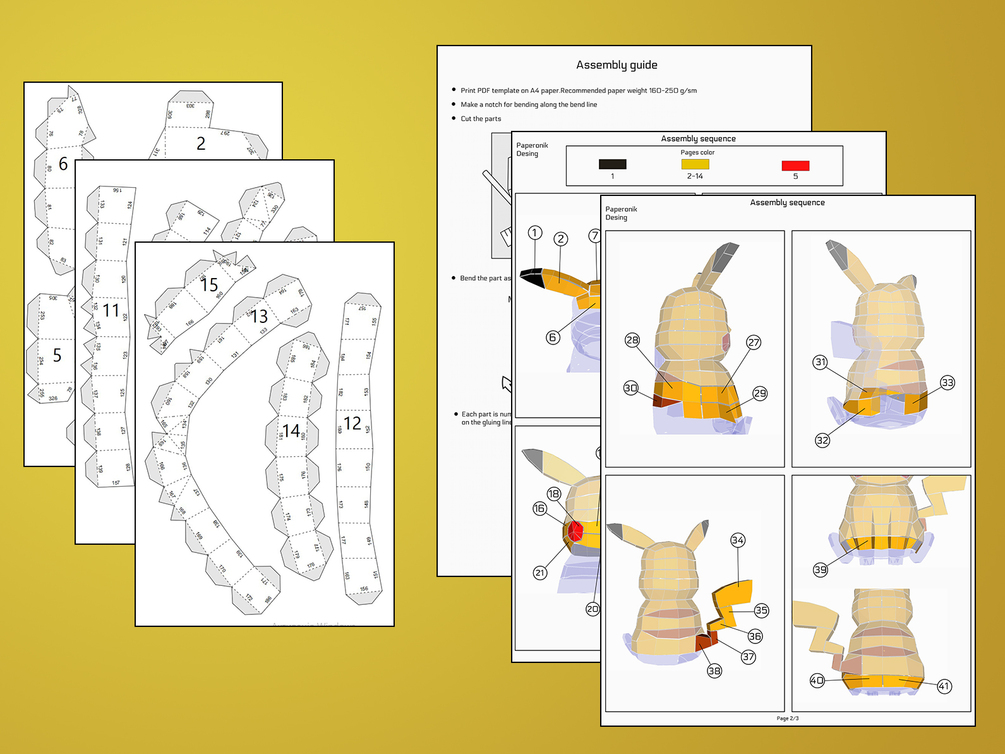 You will need colored paper (160-250 grams per square meters), printer, glue,ruler, scissors, a little time and inspiration.The color for each sheet as well as the assembly sequence are indicated in the assembly guide. Just follow the step by step assembly guide.